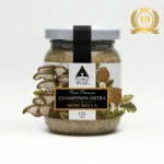 Ingredientes: ChampiƱones (ostra y morchella), aceite vegetal, mezcla de especias (cebolla, ajo y pimienta negra), vinagre, sal yodada, Ć”cido cĆtrico.